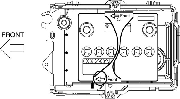 1. Assemble the battery clamp so that the arrow on it is pointed toward the front of the vehicle.