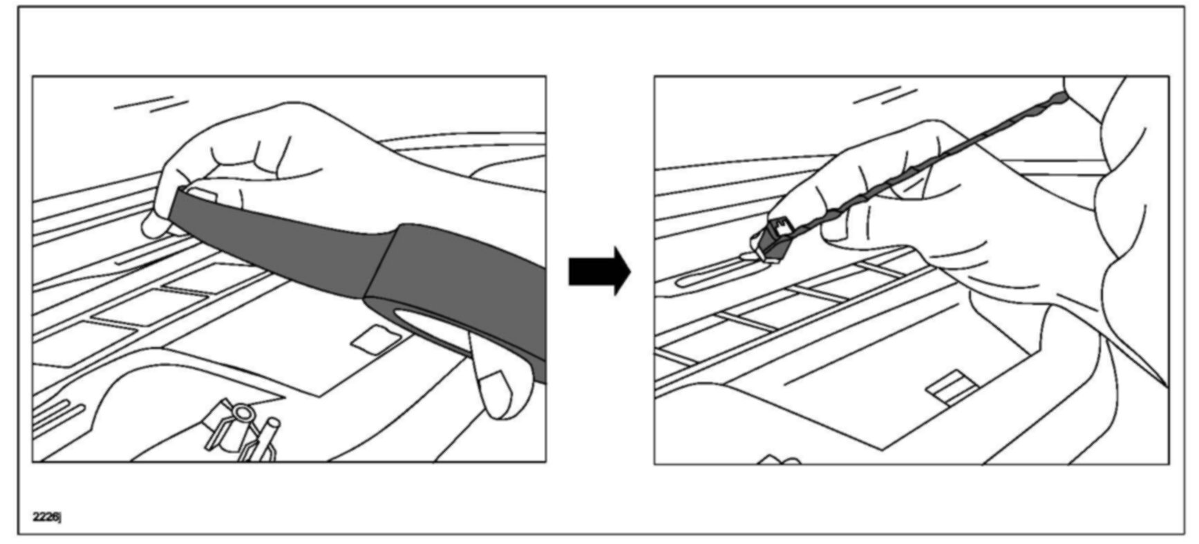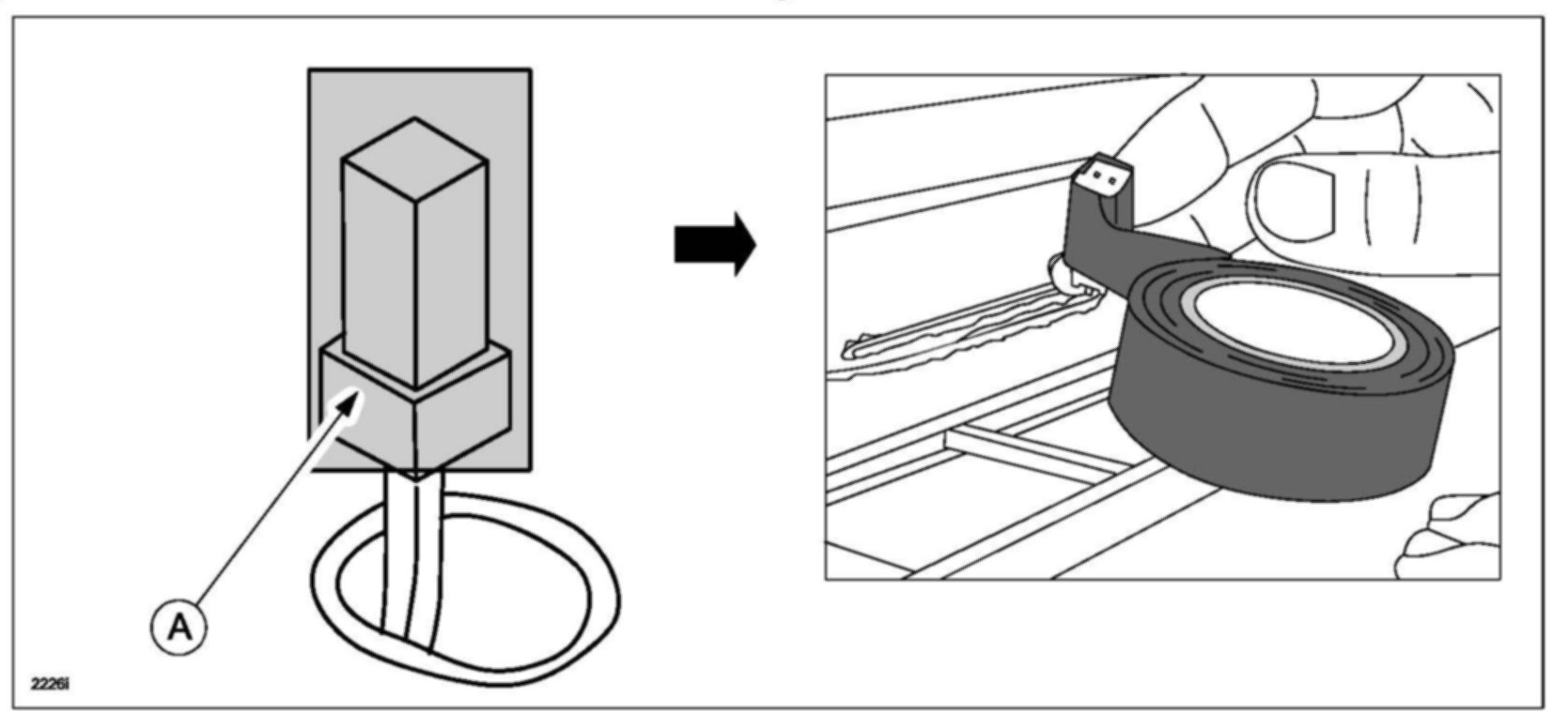 8. On vehicles equipped with auto A/C, wrap electrical tape around the solar radiation sensor connector (A) leaving about 20" that can be twisted to form a string.