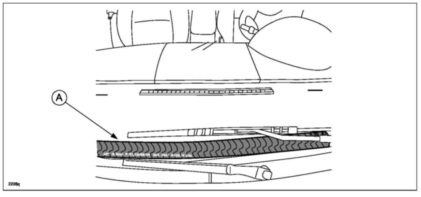 a. Front-side edge: Push in rubber tube (A) between new panel and windshield.