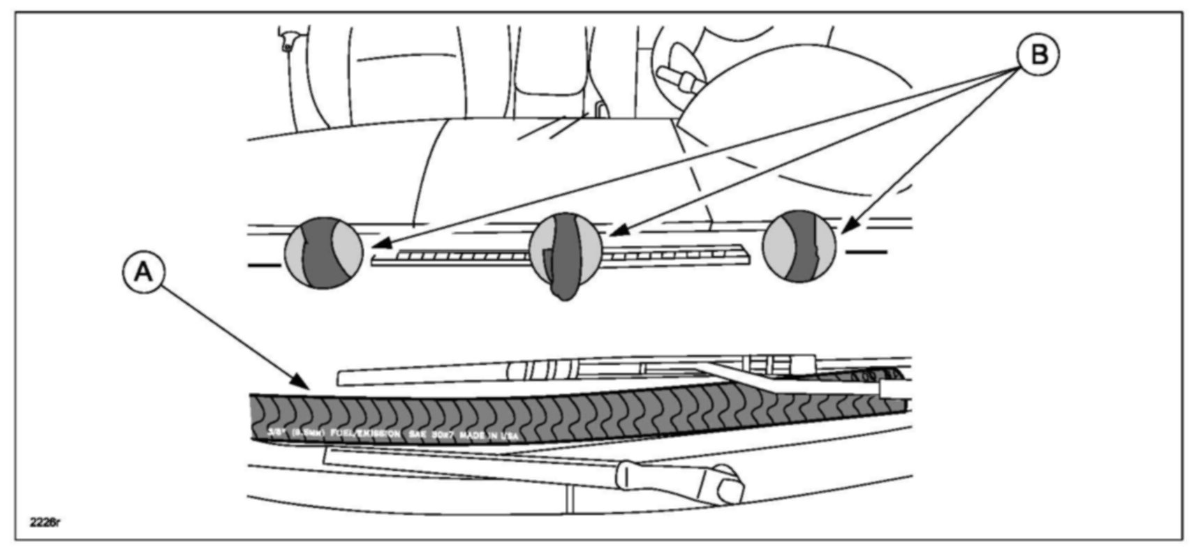 ^ 5/8 ID rubber hose cut at an angle on one end -approximately 6-1/2 inches long on one side (A) and 5-5/8 inches long on the opposite side (B)