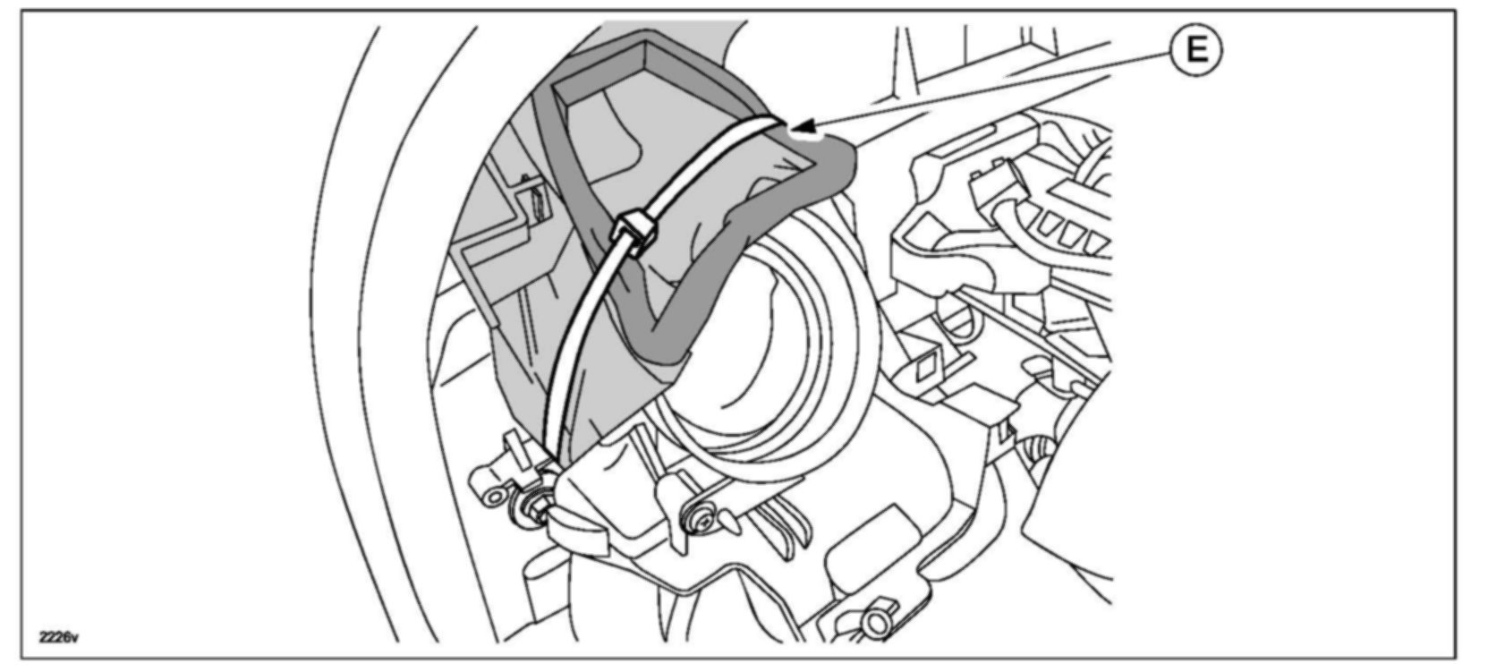 e. Driver's side near vent: Use a couple of zip ties (E) linked together to hold the new panel in place.