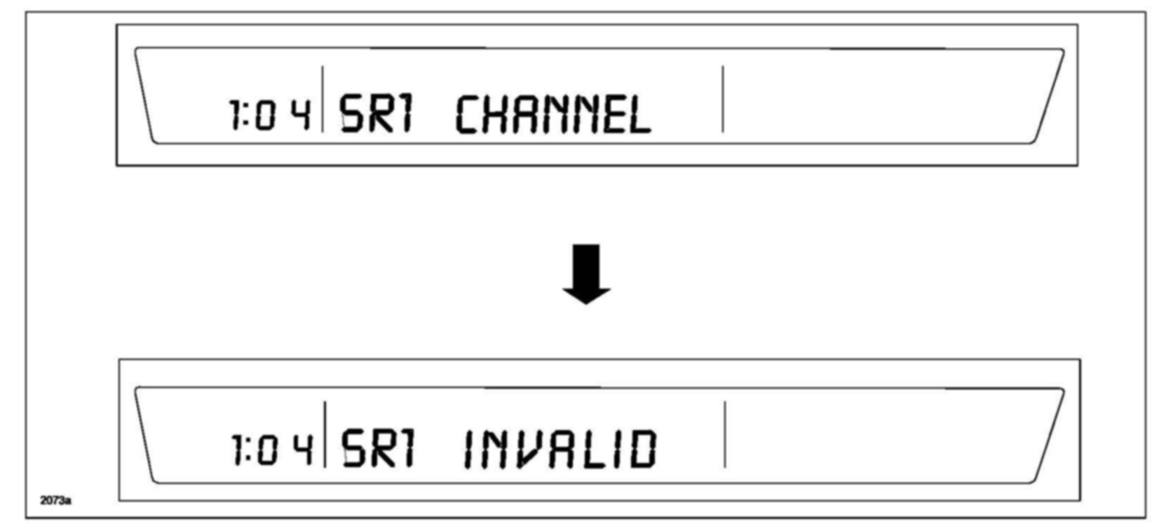 Some customers may experience that their radio station presets of certain satellite radio stations may be erased and cannot be reset. This happens after the Sirius receiver has completed receiving a new firmware version automatically from the Sirius satellite (over-the-air firmware update) or if the Sirius receiver is turned off while the channel map is being updated. When the customer goes to press a preset button, "INVALID" will be displayed as shown in the information display. The problem is an inappropriate design in the audio unit software which has now been changed.