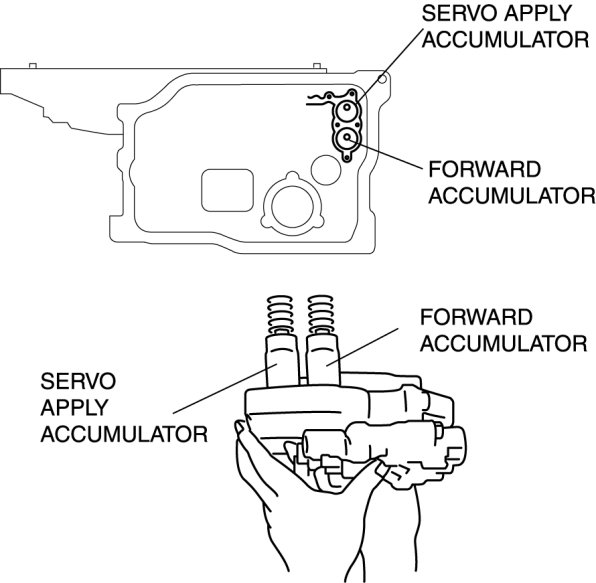 1. Install the accumulator springs and accumulators into the transaxle case.