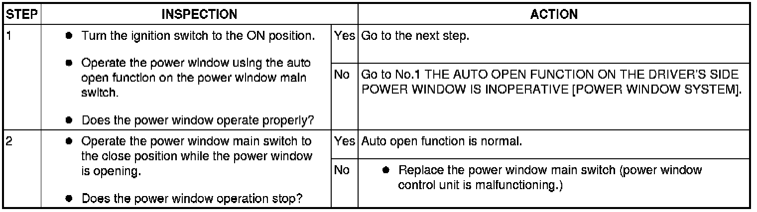 Auto Open Function (Driver's Side) Inspection