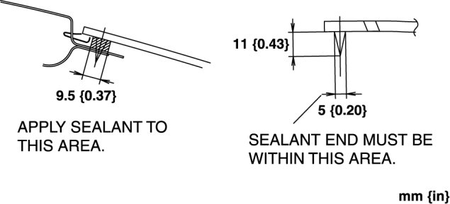 2. If the sealant has come off completely in any one place, apply some primer after degreasing, and allow it to dry for approx. 30 min. Then apply a 2 mm {0.08 in} thickness of sealant.
