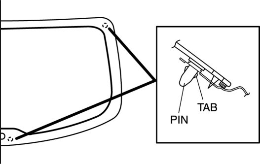 10. Press the rear window pins to engage the tabs to the body.