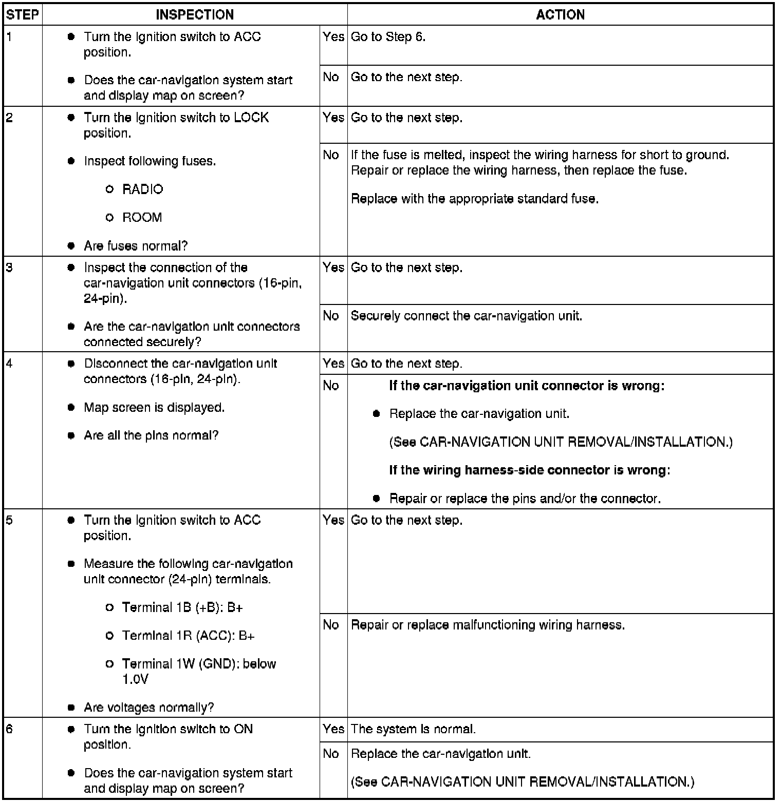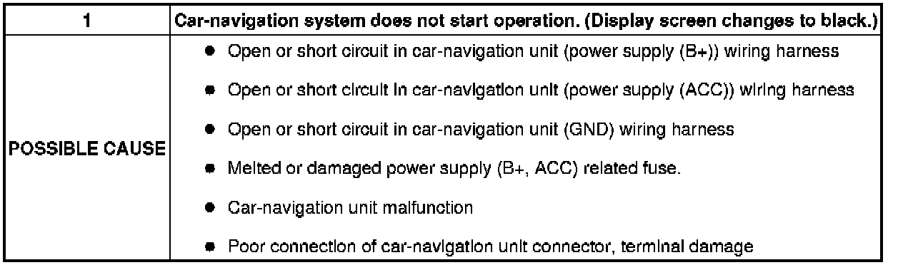 No.1 Car-Navigation System Does Not Start Operation. (Display Changes To Back.) [Car-Navigation System]