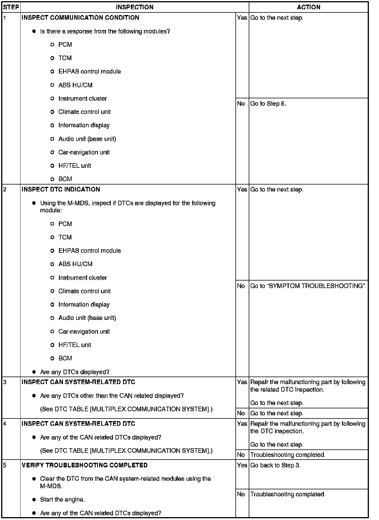- If the controller area network (CAN) system is malfunctioning, read the DTCs of the following modules, using the M-MDS to determine the malfunctioning system.