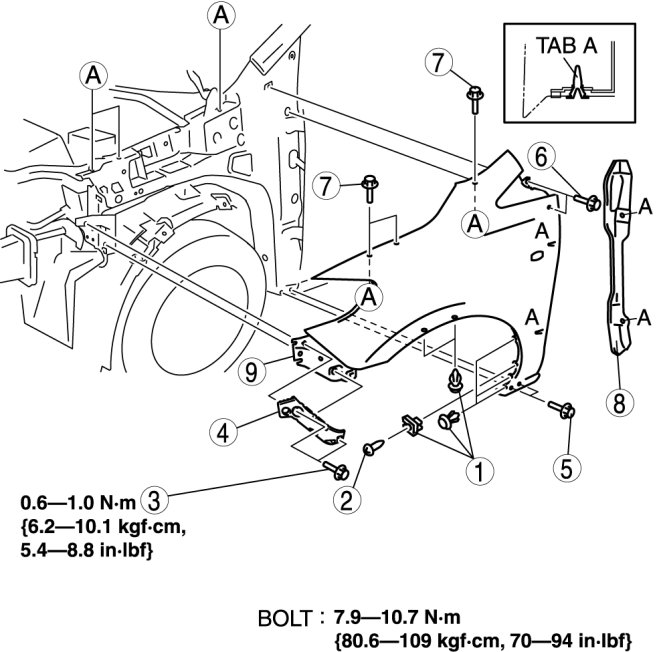 FRONT FENDER PANEL REMOVAL/INSTALLATION