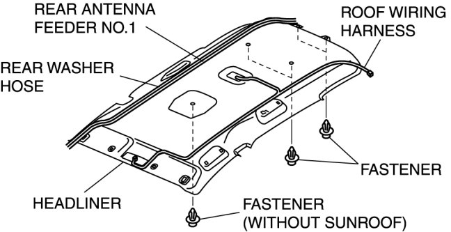 5. Disconnect the roof wiring harness connector and detach the roof wiring harness connector clip from the body.