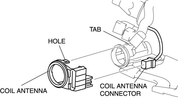 5. Detach the steering lock tabs from the holes on the coil antenna.