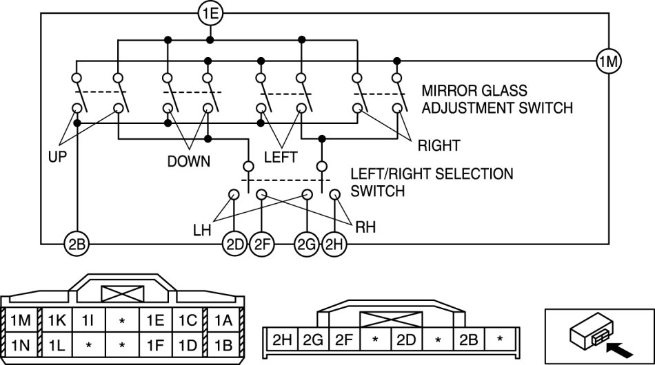 Inspect for continuity between the power outer mirror switch terminals using an ohmmeter.