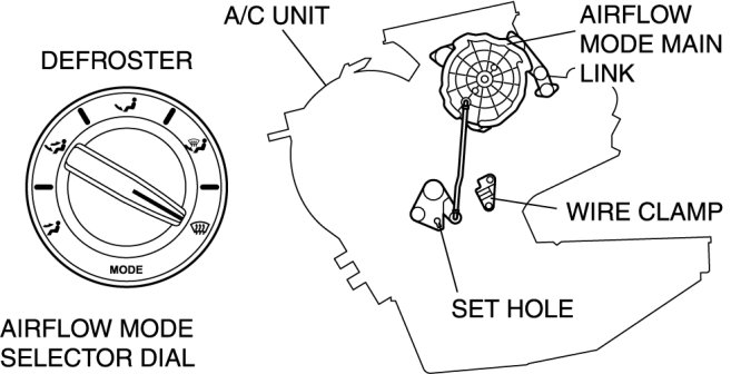 - If the airflow mode wire is set without first fixing the airflow mode main link position, it is possible that the airflow mode door cannot be switched normally.