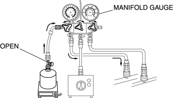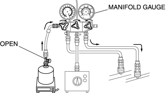 1. Open all the valves of the manifold gauge.