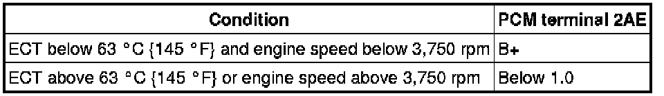 2. Verify that the PCM terminal 2AE voltage is as shown in the following table when the variable tumble shutter valve actuator rod is depressed and released by hand.