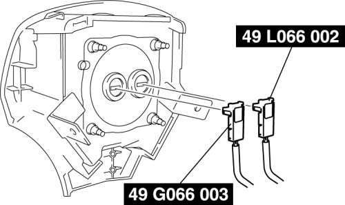 - The driver-side air bag module is a dual inflator type. If one inflator is forced to operate (deploy), the other may operate (deploy) accidentally. To prevent injury while disposing of the air bag module, make sure to operate (deploy) both driver-side air bag module inflators simultaneously, following the procedure below.