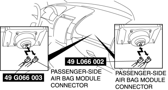 2. Connect the SSTs (Adapter harness) to the passenger-side air bag module as shown in the figure.