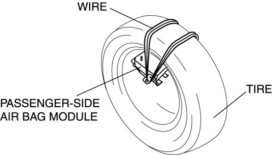 - The passenger-side air bag module is a dual inflator type. If one inflator is forced to operate (deploy), the other may operate (deploy) accidentally. To prevent injury while disposing of the air bag module, make sure to operate (deploy) both passenger-side air bag module inflators simultaneously, following the procedure below.