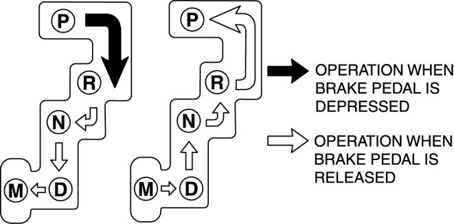 2. Verify that the selector lever can be shifted as shown in the figure.