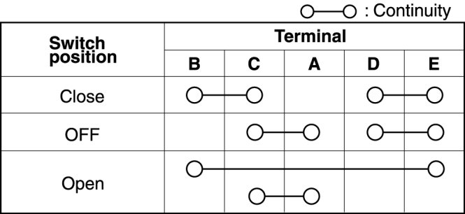 If not as indicated in the table, replace the power window subswitch.
