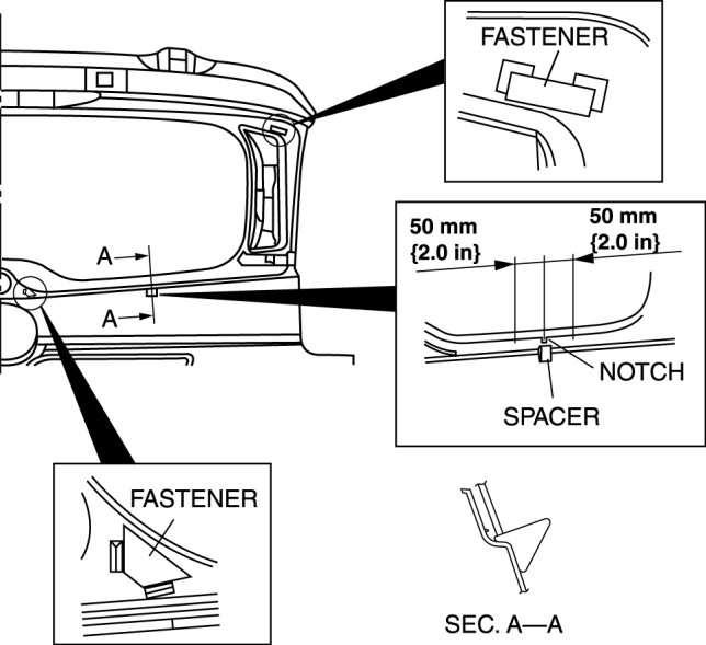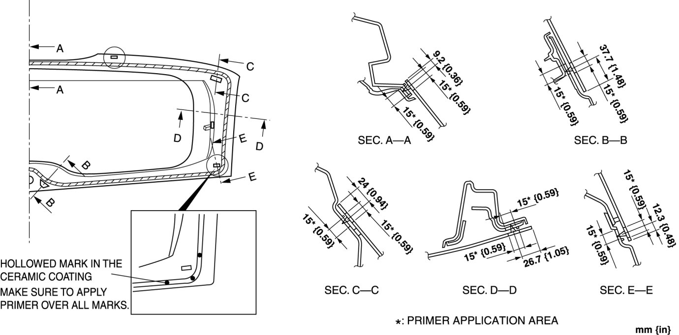8. When reusing the liftgate, apply primer to the area where the sealant has come off completely and allow it to dry for approx. 30 min.