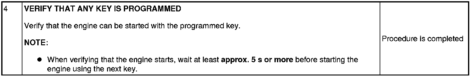 Immobilizer System-Related Parts Service and Programming Procedure Table: