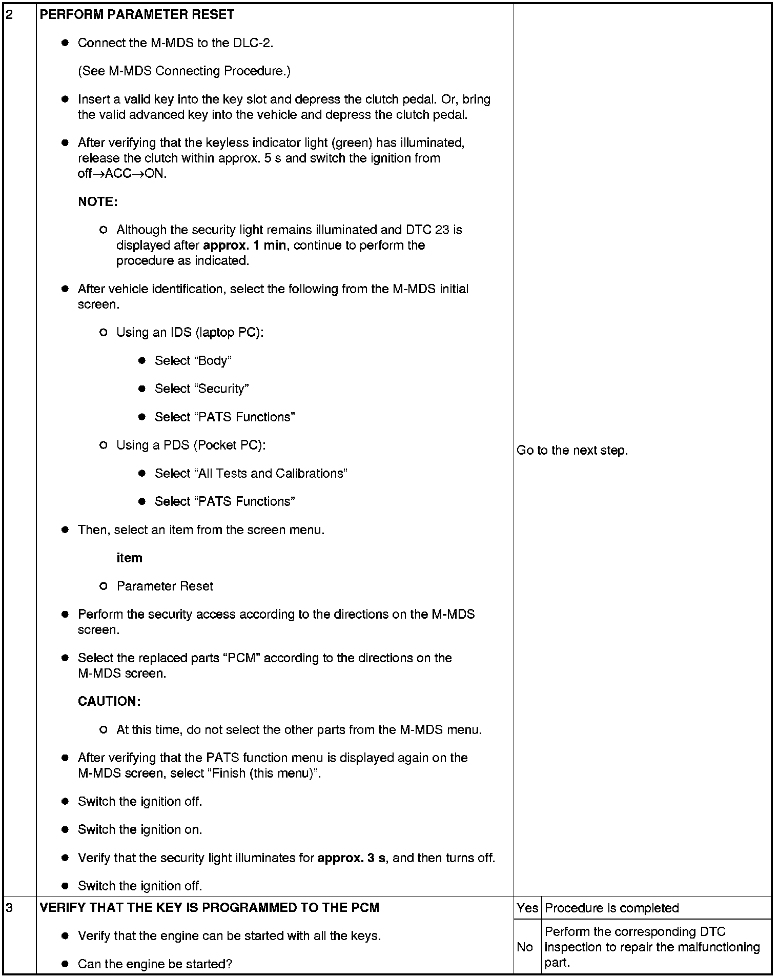 No.2 Programming Procedure Due to PCM Replacement