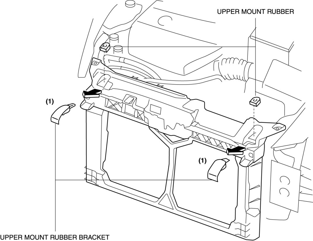 1. Remove the upper mount rubber bracket while pressing down the upper mount rubber bracket tab in the direction of the arrow in the figure.