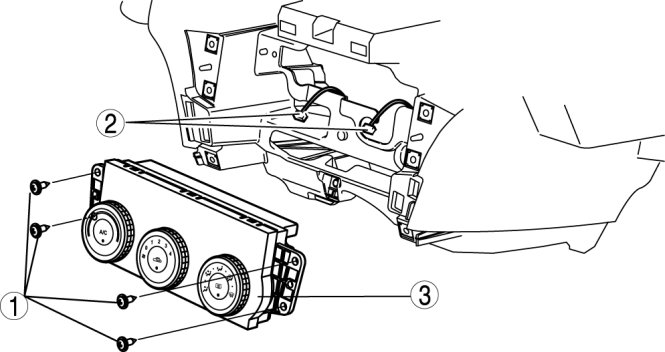 4. Disconnect the climate control unit connectors and remove the climate control unit.