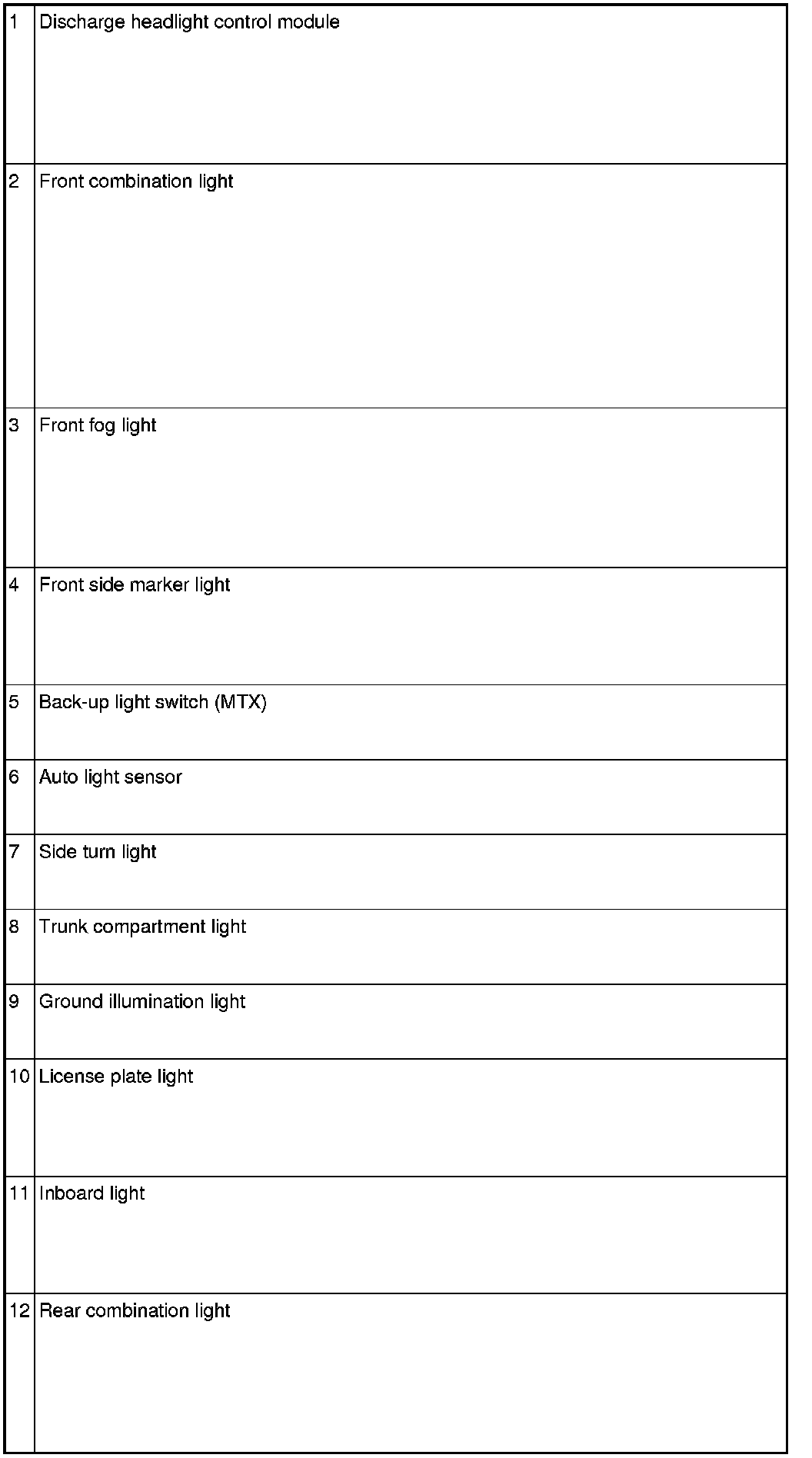 LIGHTING SYSTEMS LOCATION INDEX