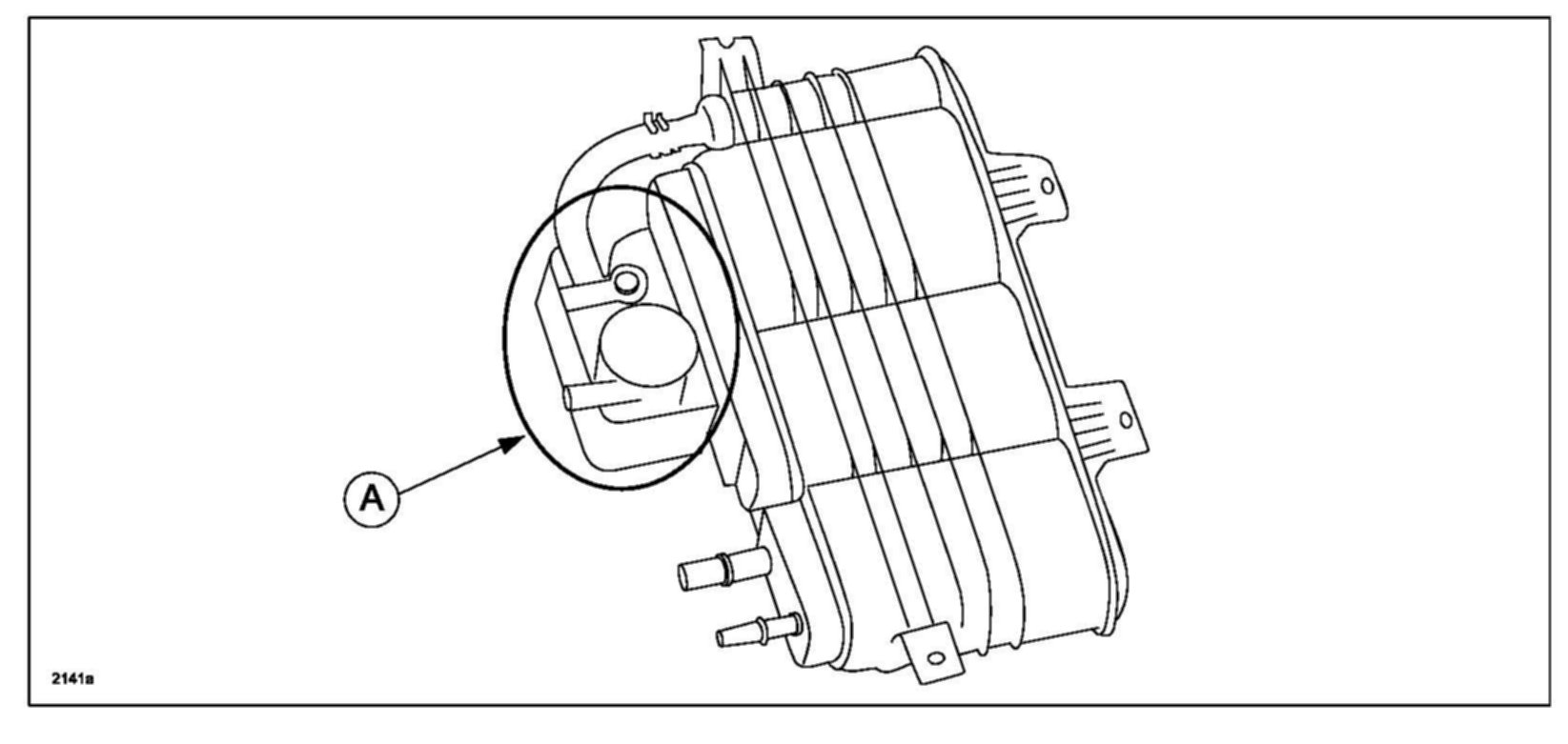 b. Remove bracket (A), with CVV and filter (B) together from canister body.