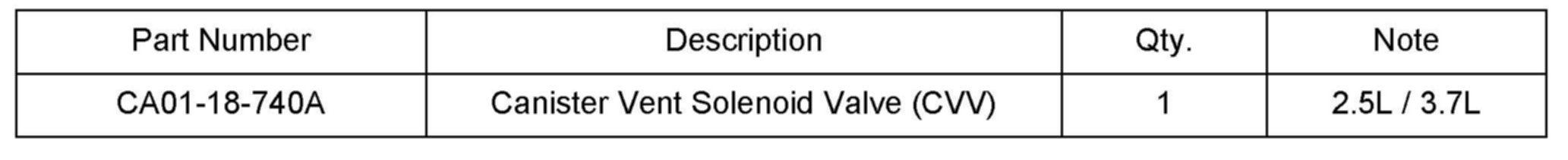 ^ 2.5L Engine: Proceed to Step 1 for PCM Reprogramming, then to Step 4 for Canister Vent Solenoid Valve (CVV) replacement.
