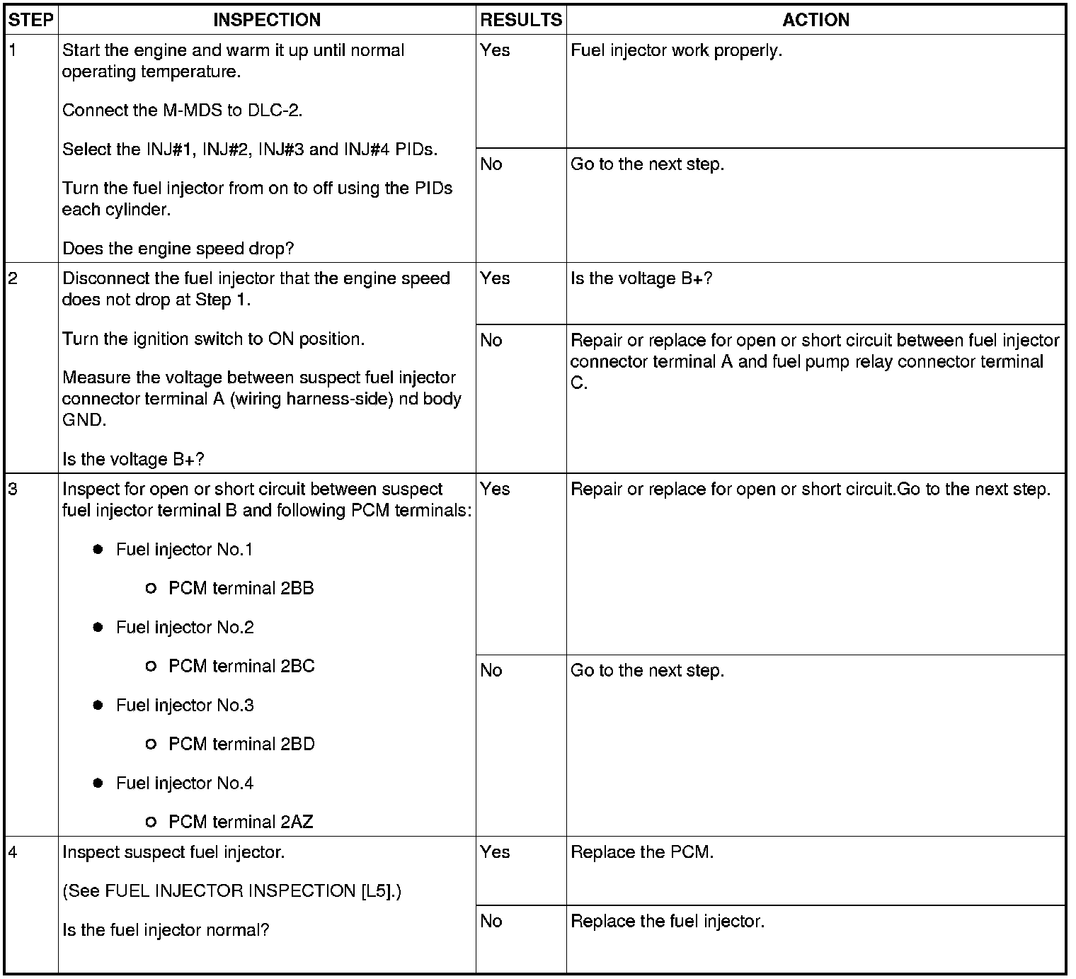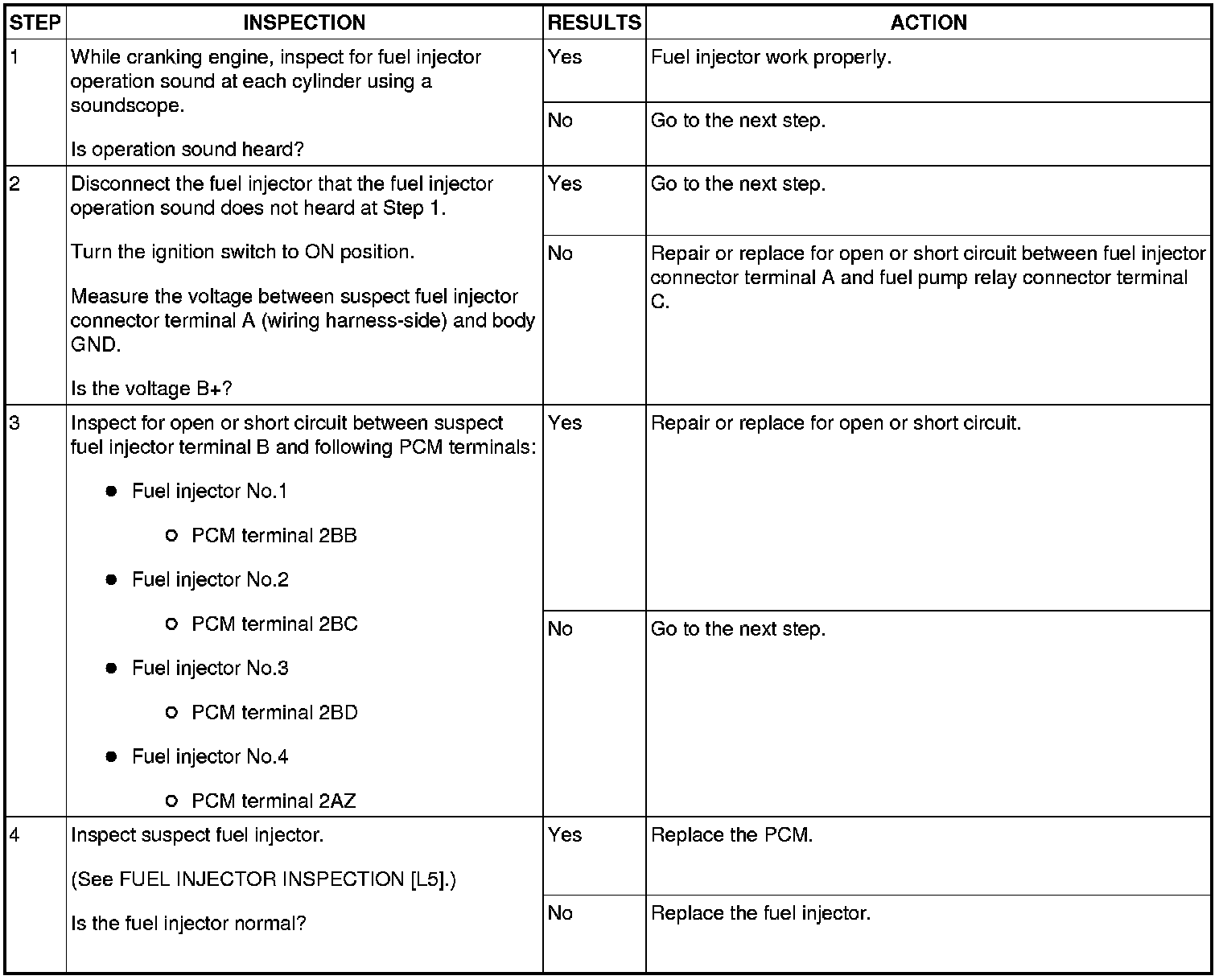 Fuel Injector Operation Inspection