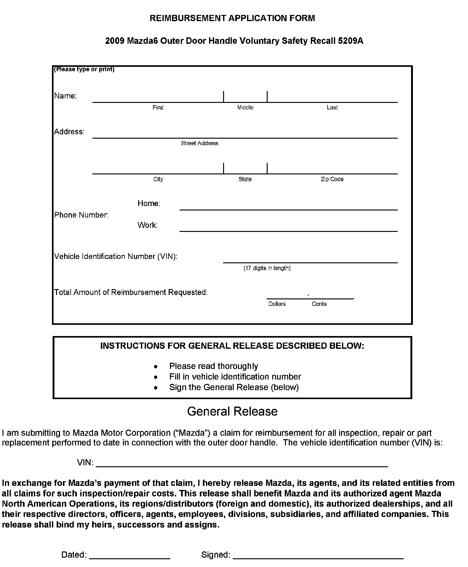 Reimbursement Plan/Application Form