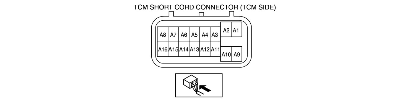 - Use the ground of terminal A9 of the TCM connector (wiring harness-side) when measuring terminal voltage, as an error may occur when connecting the negative circuit tester to ground.