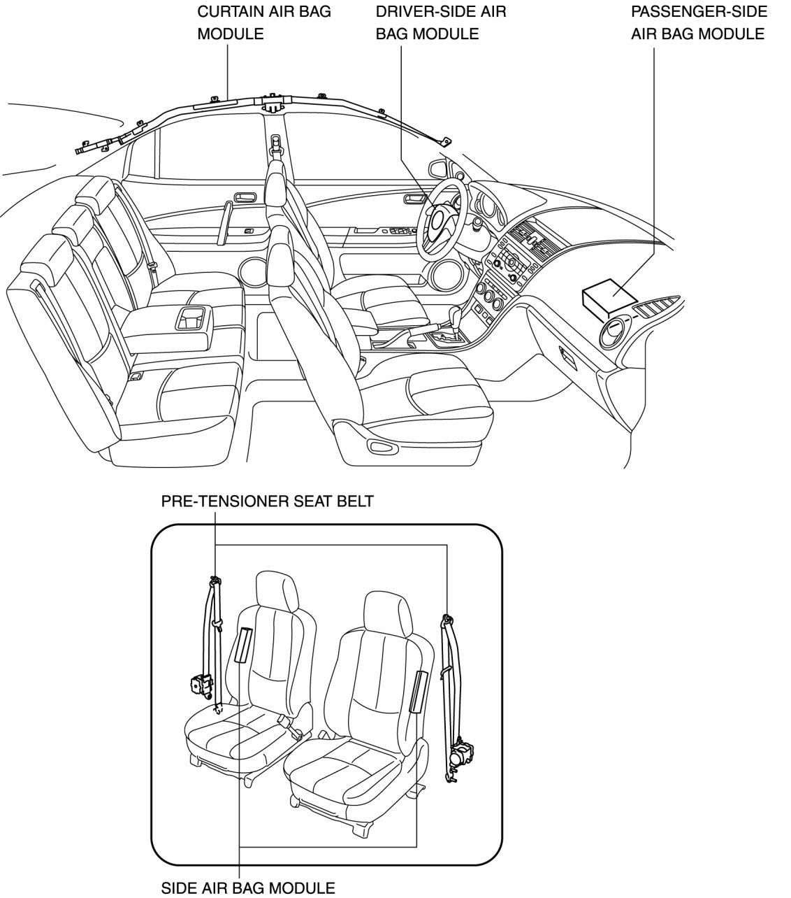 - Do not install any radio set-related devices in the area where the air bag module deploys to prevent a secondary accident if the air bag were to deploy.
