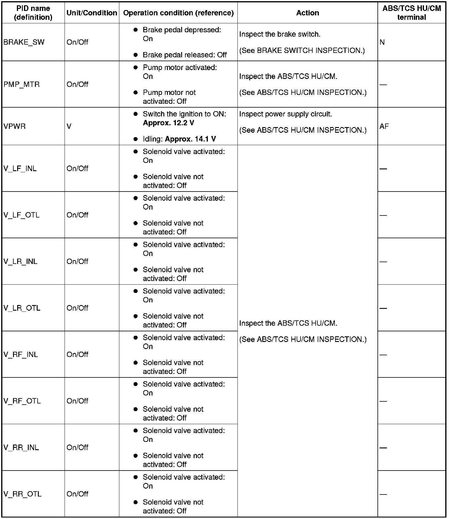 ON-BOARD DIAGNOSIS [ABS/TCS]