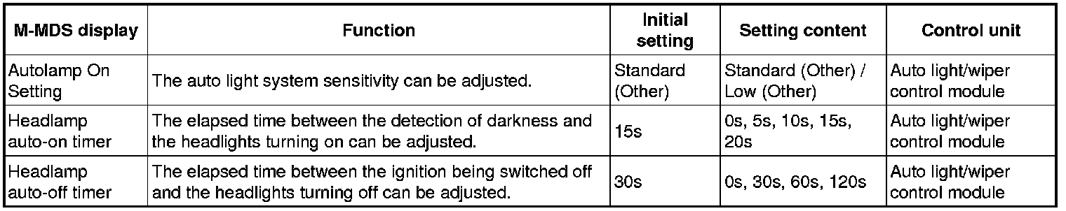 - For the room light control system / turn light system, refer to the control system personalization features setting. Programming and Relearning