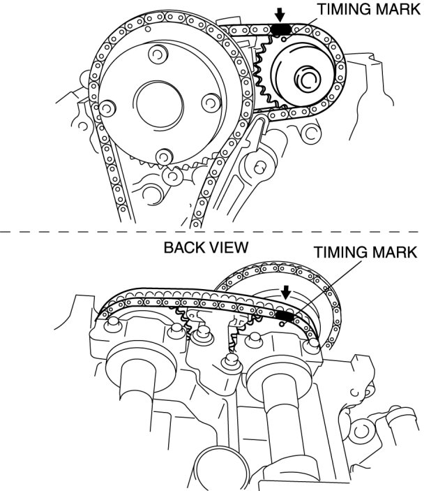 2. Mark the timing chain at the position of each timing sprocket timing mark.