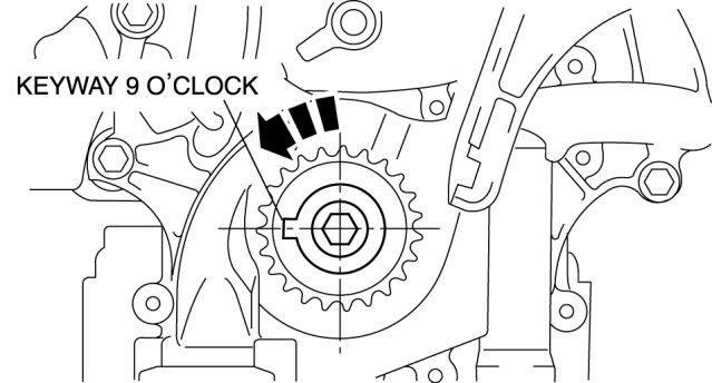 1. Turn the crankshaft clockwise so that the crankshaft keyway is in the 11 o'clock position. (This will position the No.1 cylinder at TDC.)