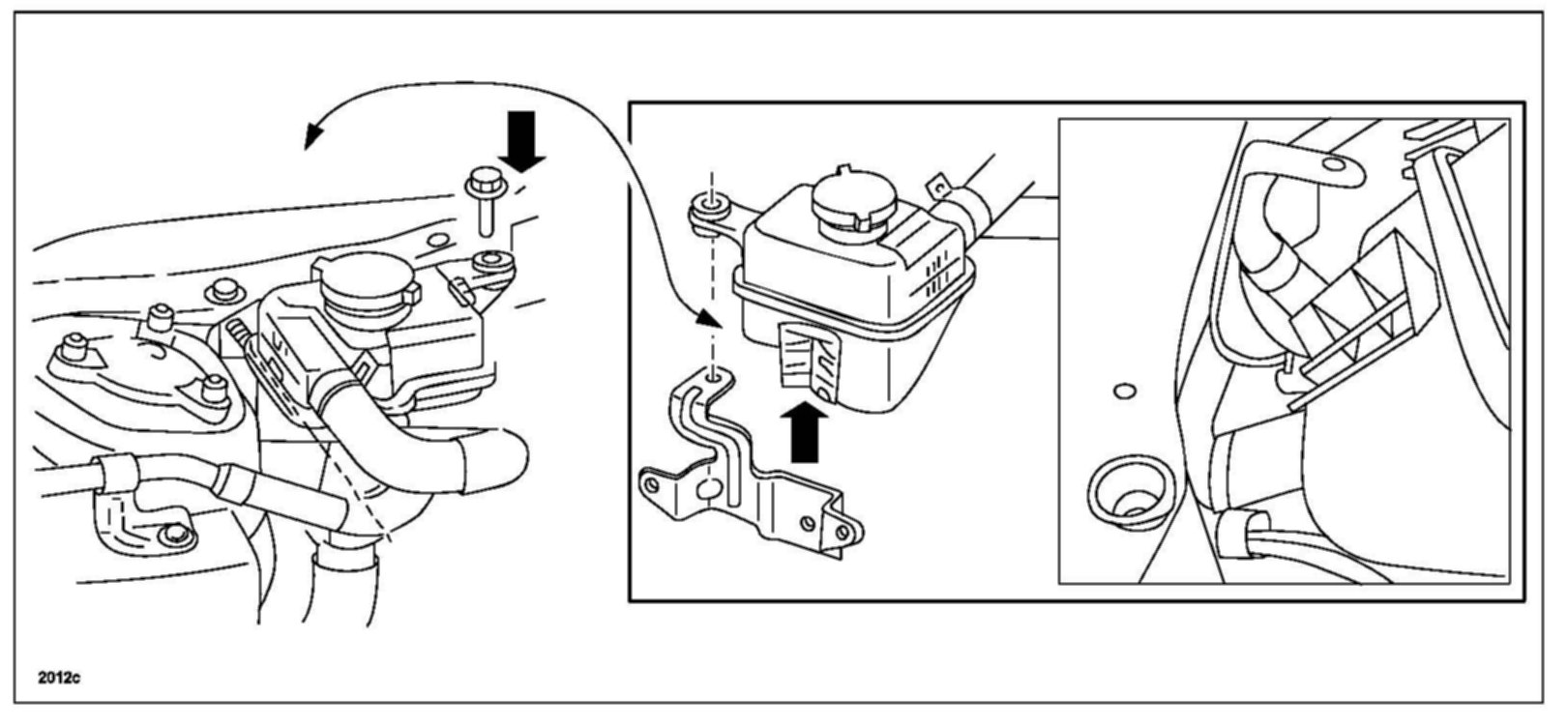 9. Remove power steering reservoir by lifting up on reservoir and releasing from bracket.