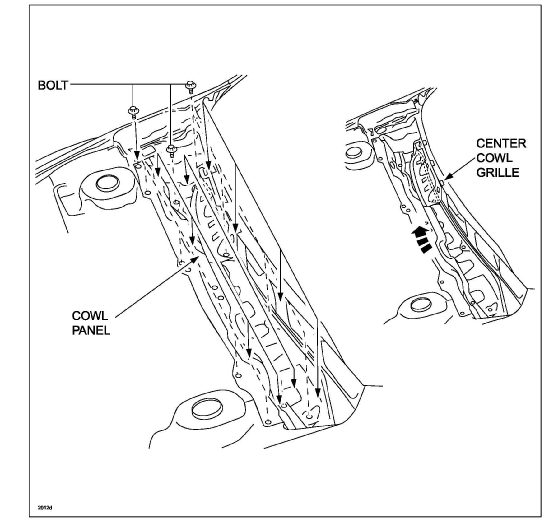 3. Remove cowl grille assembly according to MS3 online instructions or Workshop Manual (section 09-16 COWL GRILLE REMOVAL/INSTALLATION).