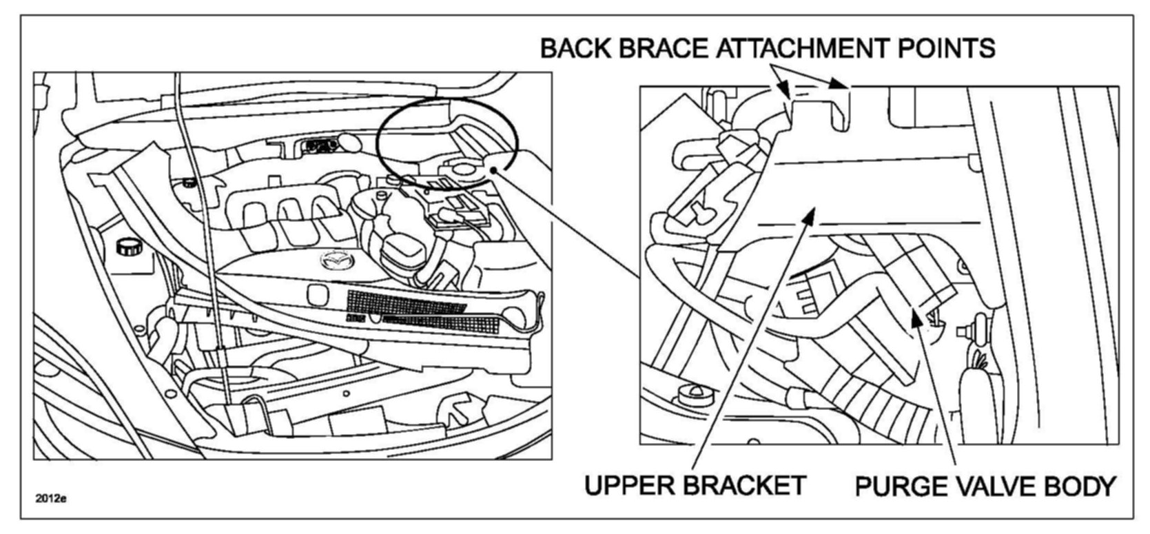 11. Locate purge valve assembly outboard from power brake unit and rearward of PCM.