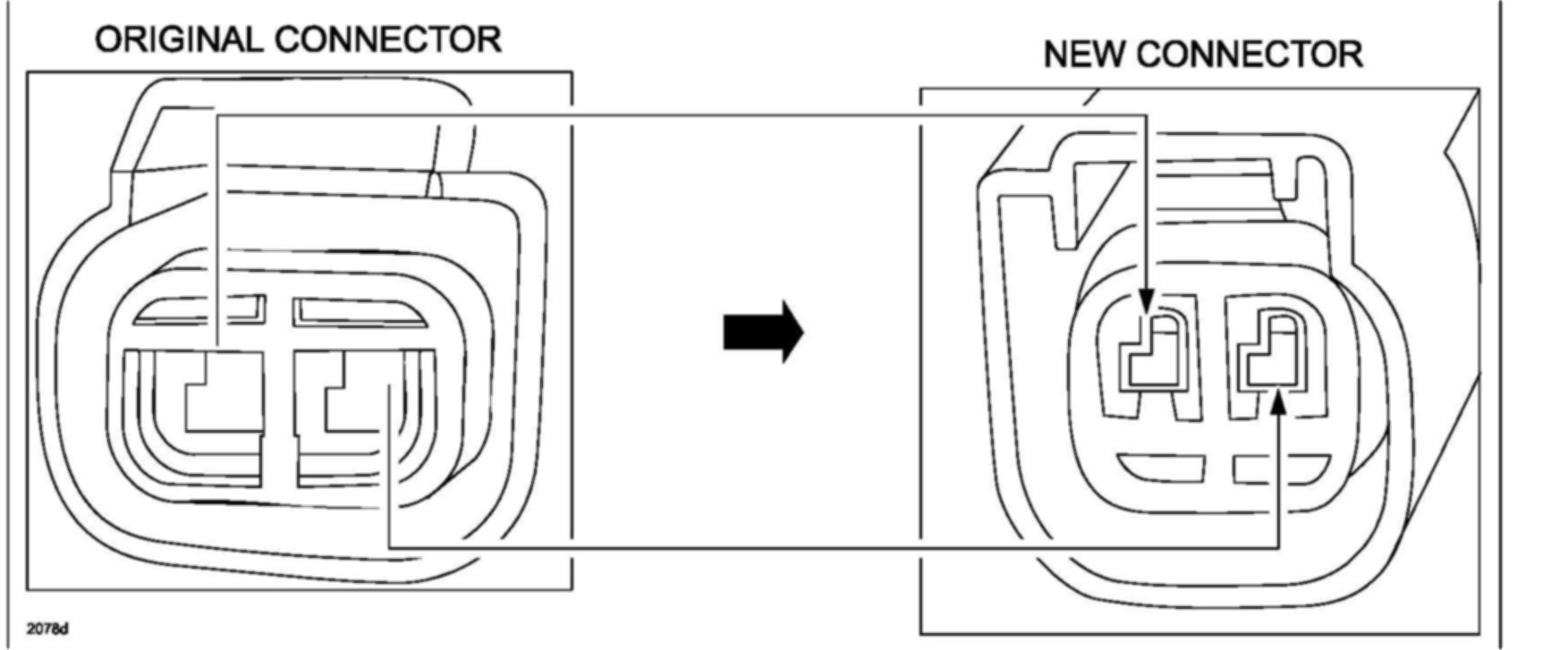 d. After inserting terminals into new connector, check the harness color. If they are inserted into the wrong side, correct them.