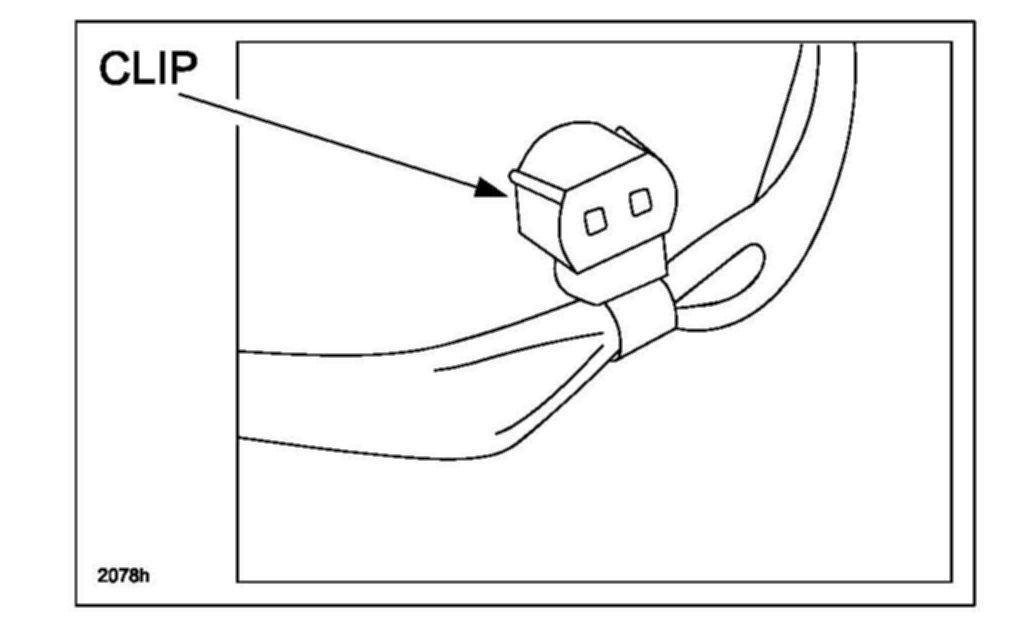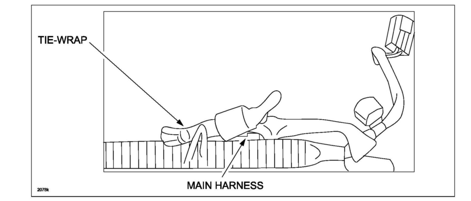 21. Align positions of original clip and new short cord clip, then tie-wrap harness joint as shown above.
