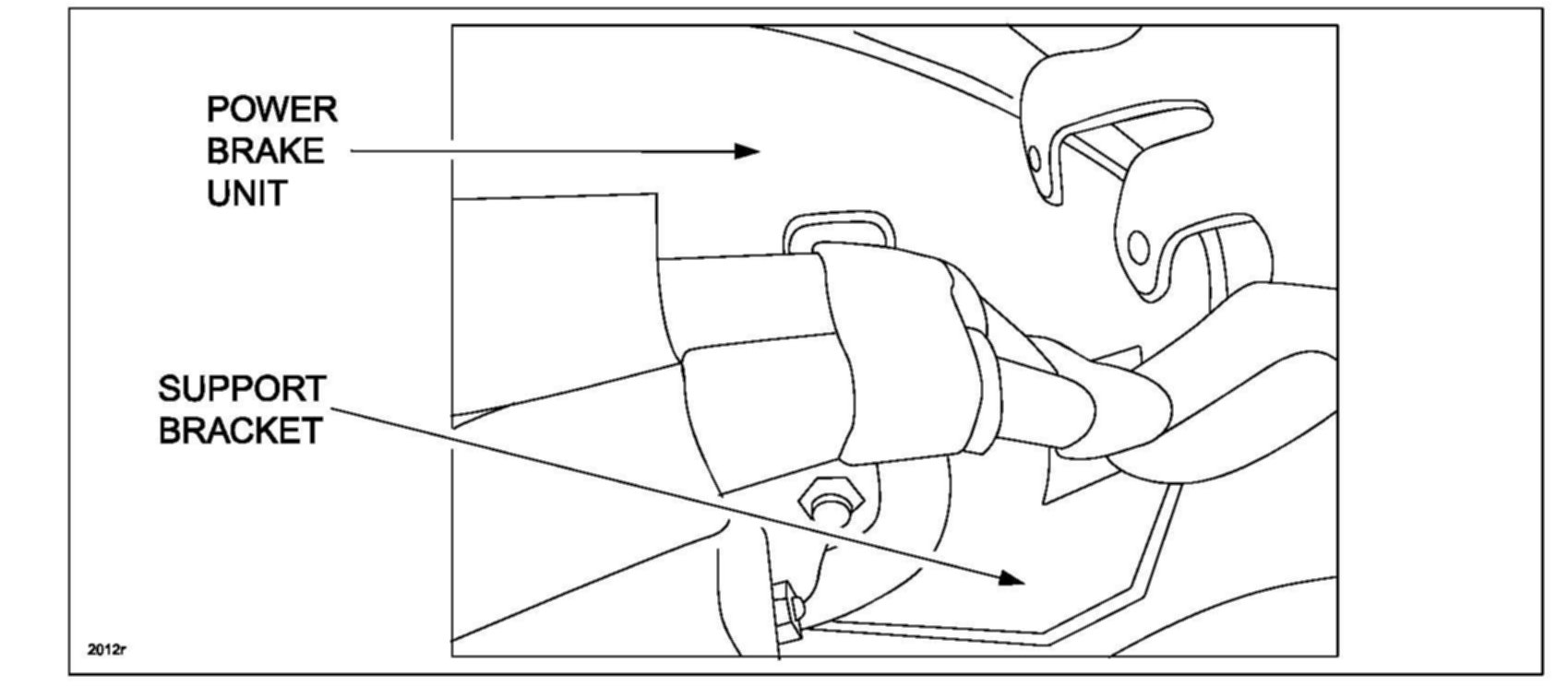 37. Verify both purge valve hose inboard from assembly are sitting squarely in power brake unit support bracket.