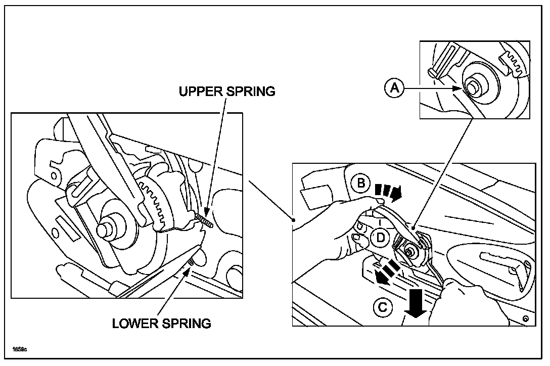 c. Using a flat blade screwdriver, push down on the lower spring through the opening in the side cover.