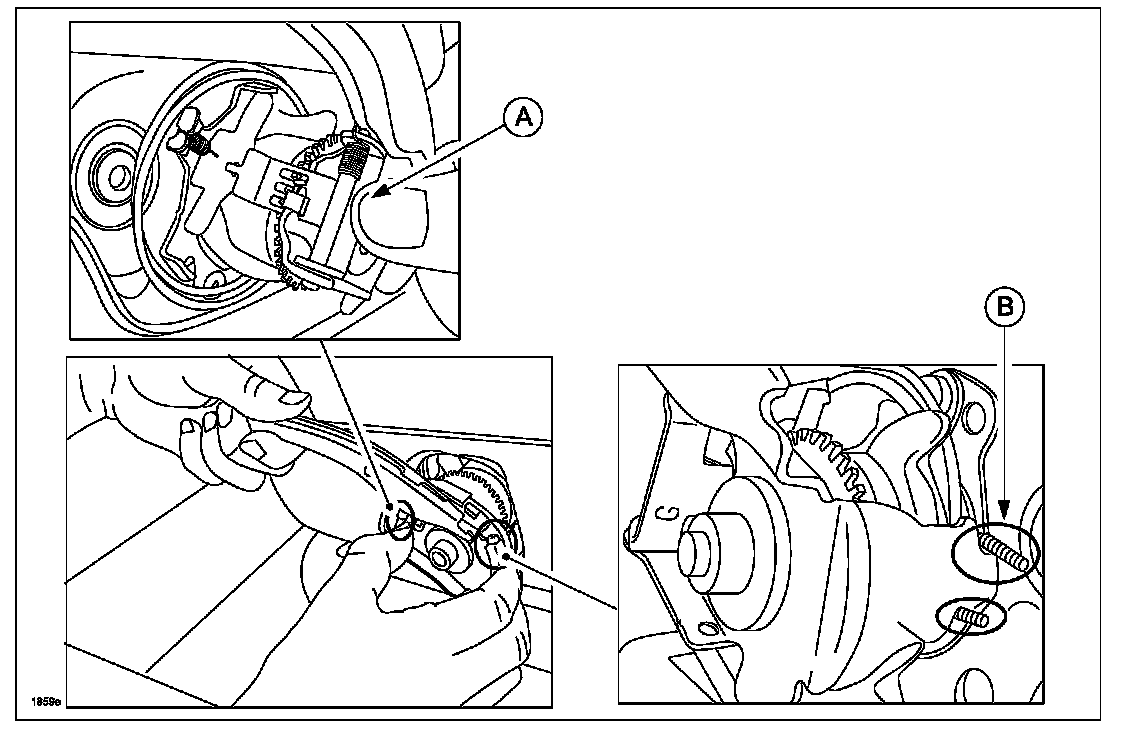 b. Apply grease to the guide cam shaft and the contact surfaces of the guide cam and lock plate hook by reusing grease from the old part.