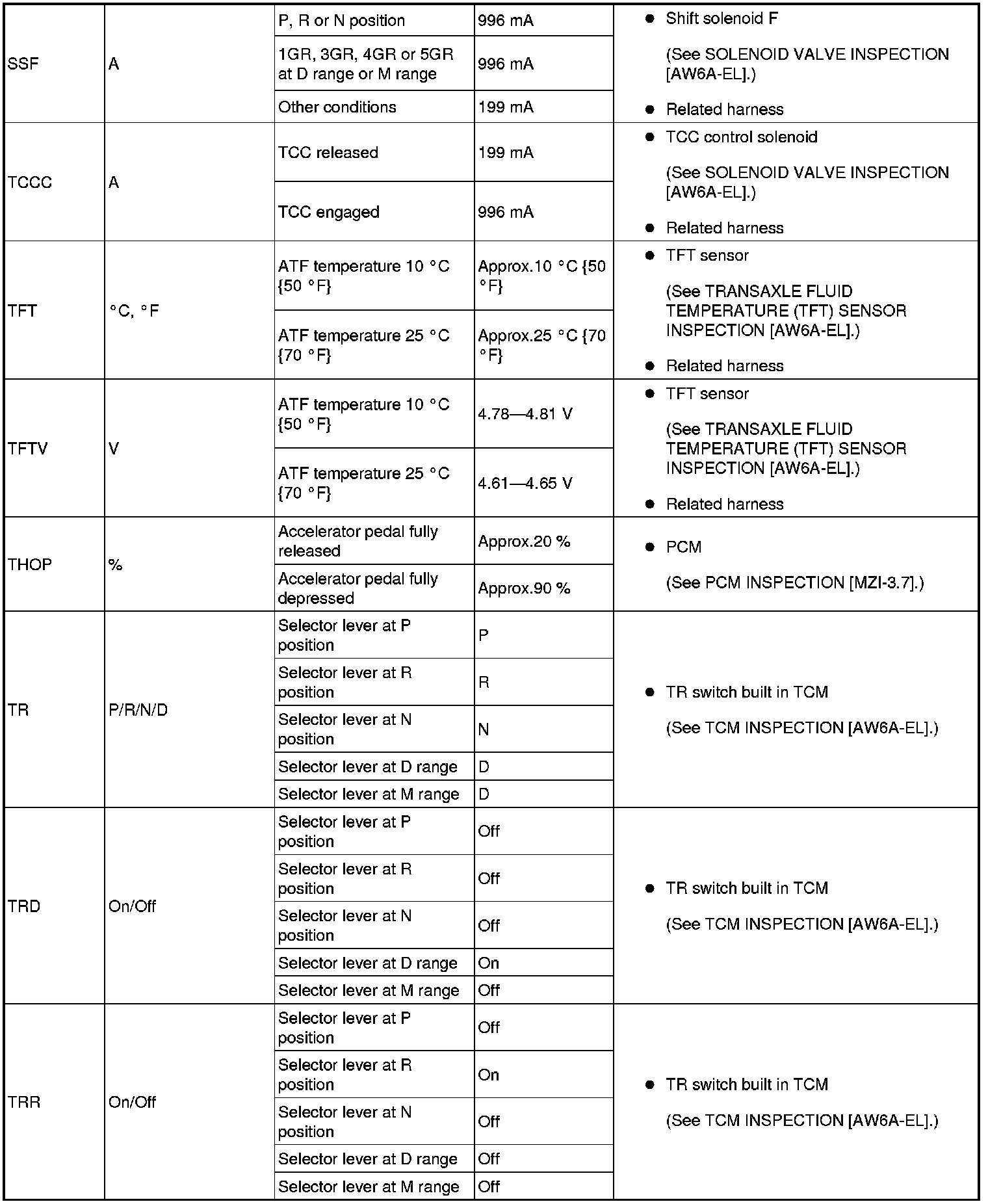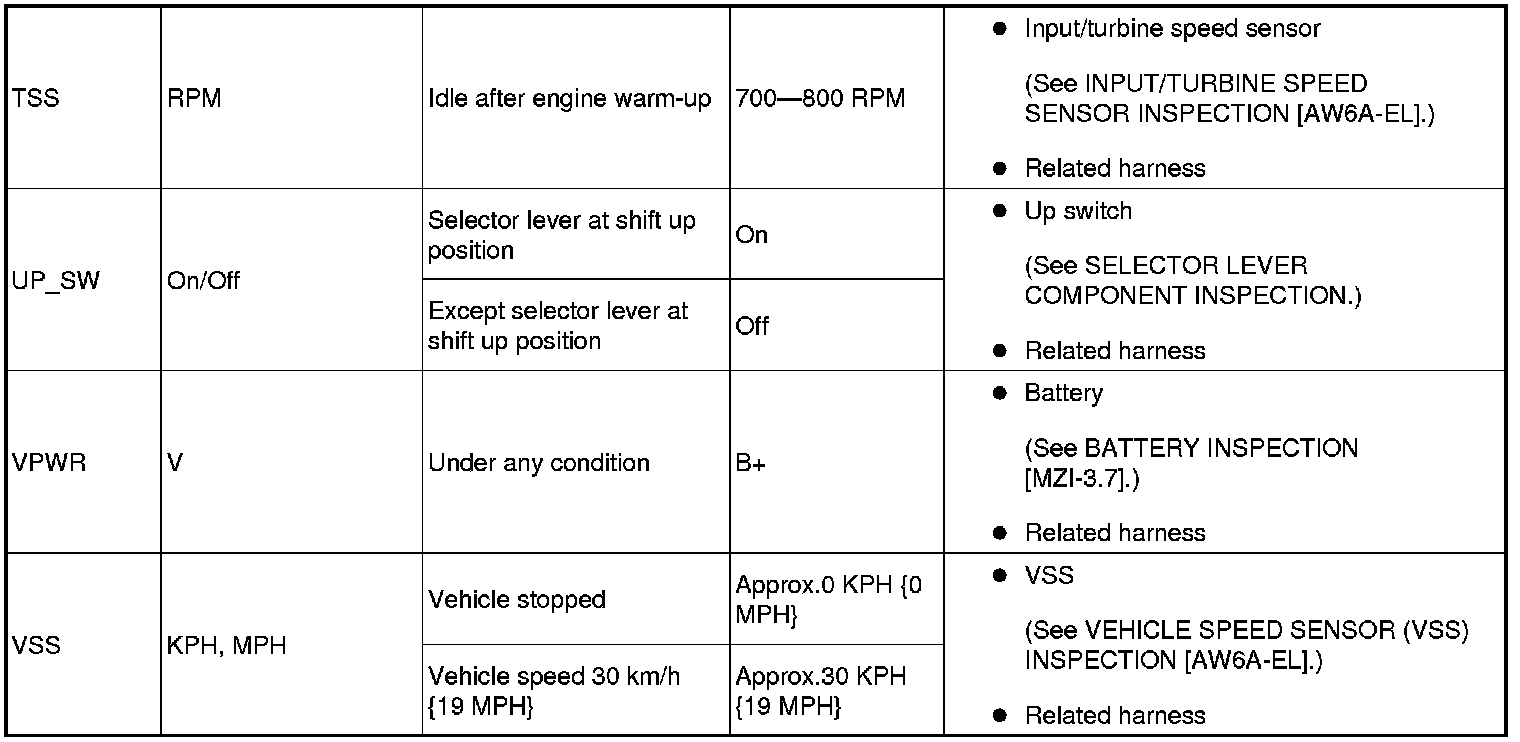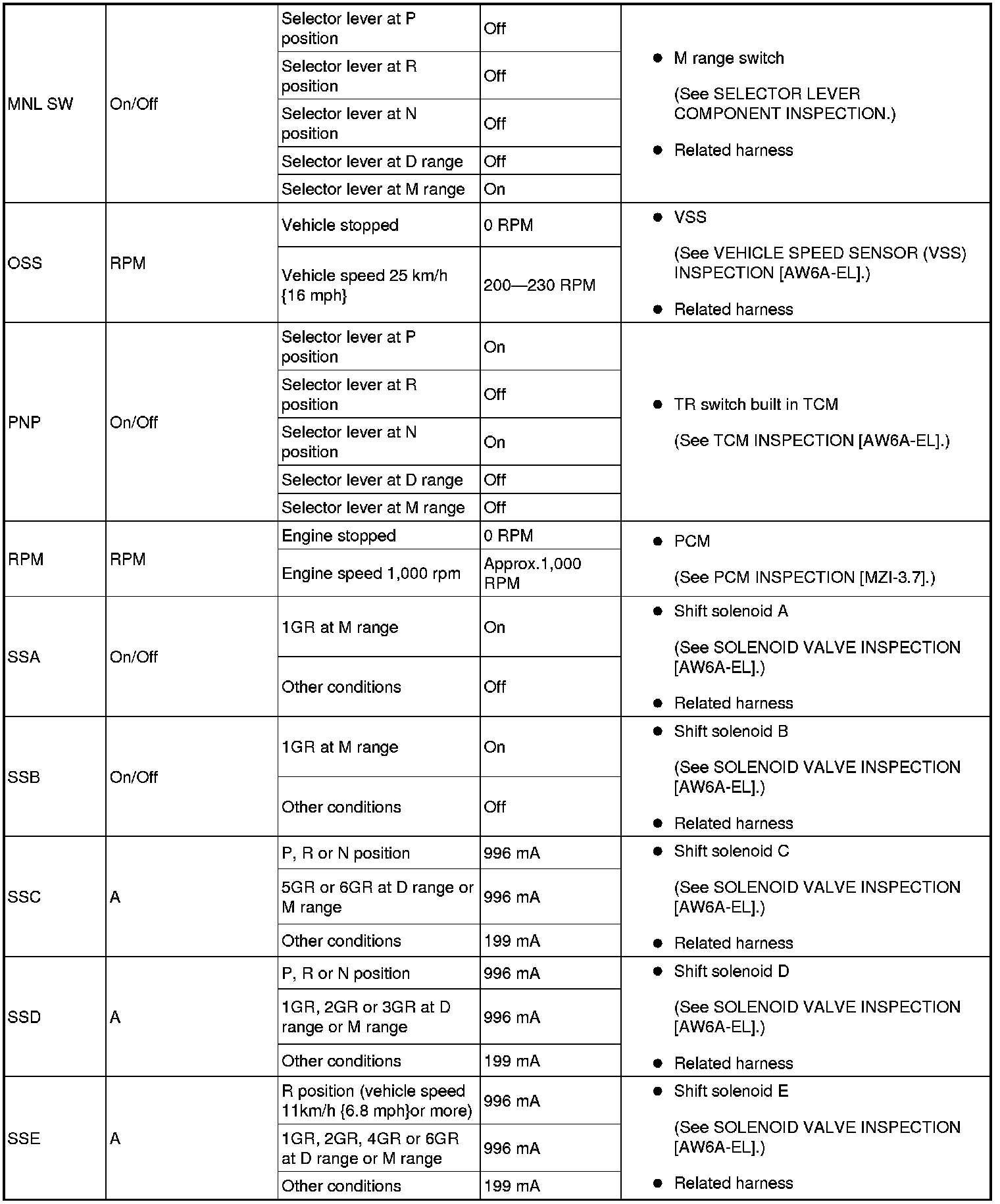 ON-BOARD DIAGNOSTIC SYSTEM PID/DATA MONITOR INSPECTION [AW6A-EL]