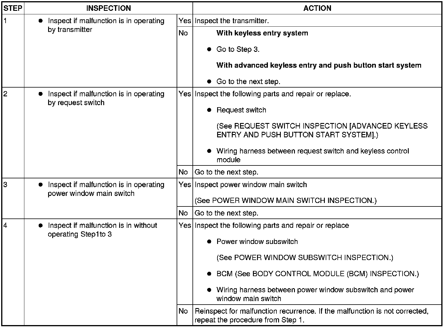 No.7 ALL DOOR GLASS OPERATE ACCIDENTALLY [POWER WINDOW SYSTEMS (EXTERIOR OPEN/CLOSE FUNCTION)]